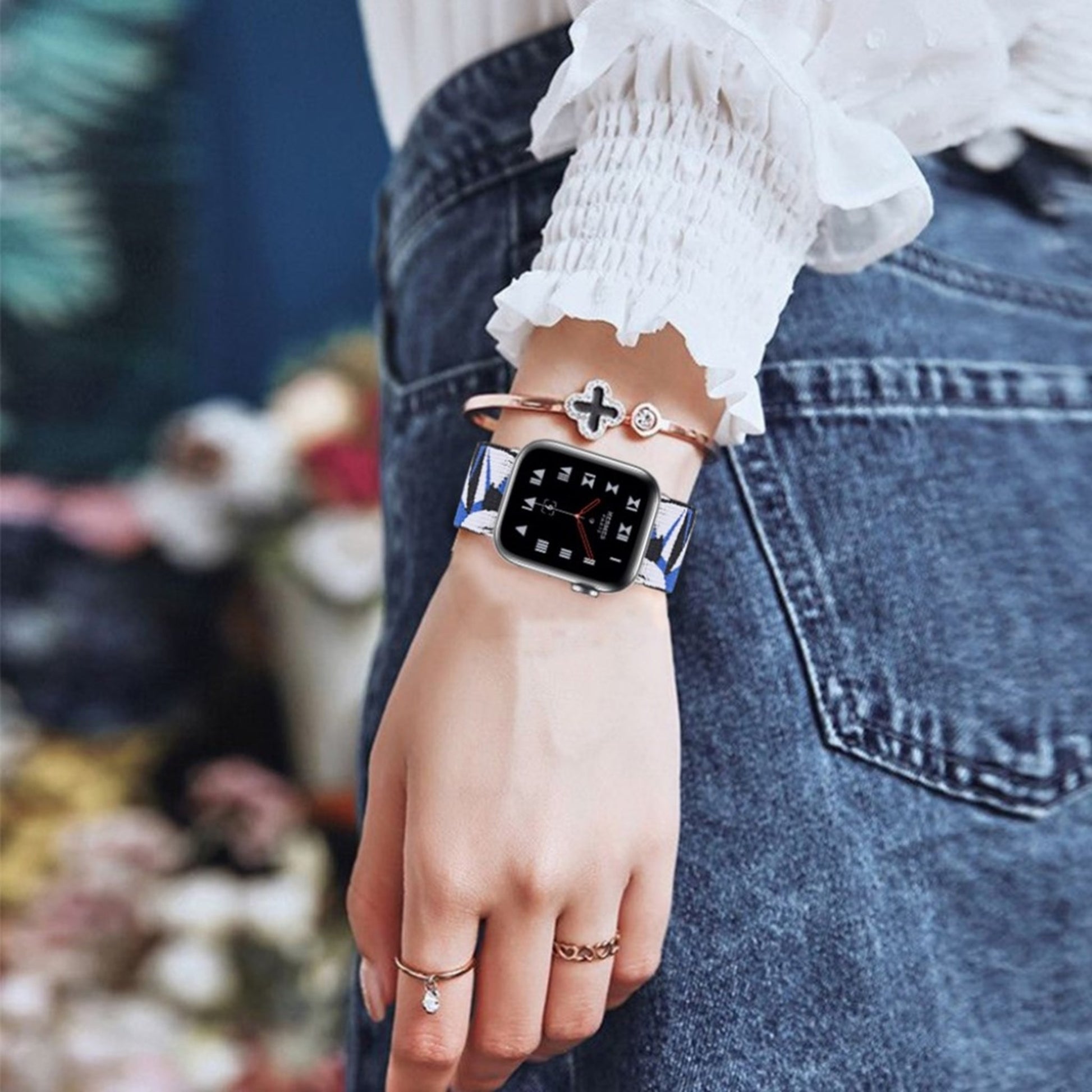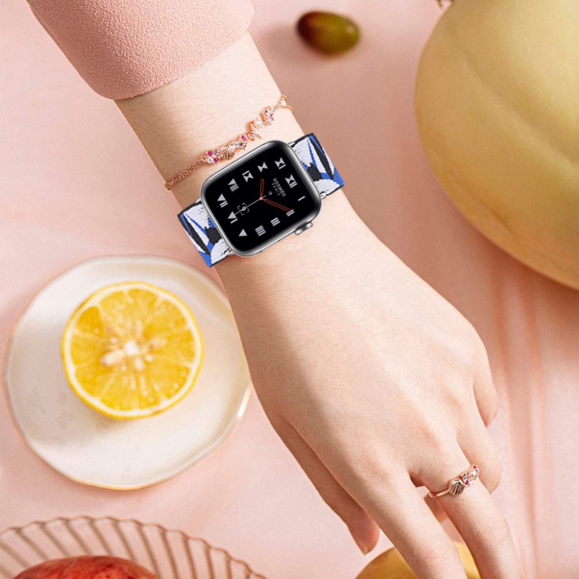 Cinturino Apple Watch 42mm - 44mm elastico con motivo elegante - Frammenti Di Blu E Nero