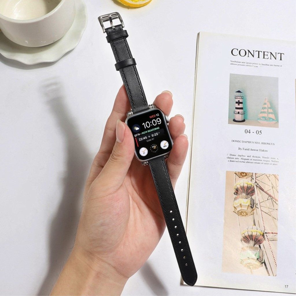 Cinturino Apple Watch 42mm - 44mm in vera pelle con decorazioni di perline - Nero