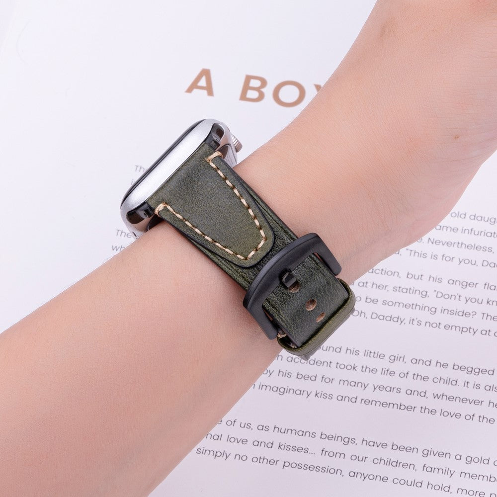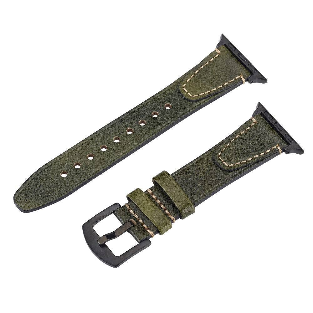 Cinturino Apple Watch Series 10 42 mm con design a U in vera pelle di mucca - Verde