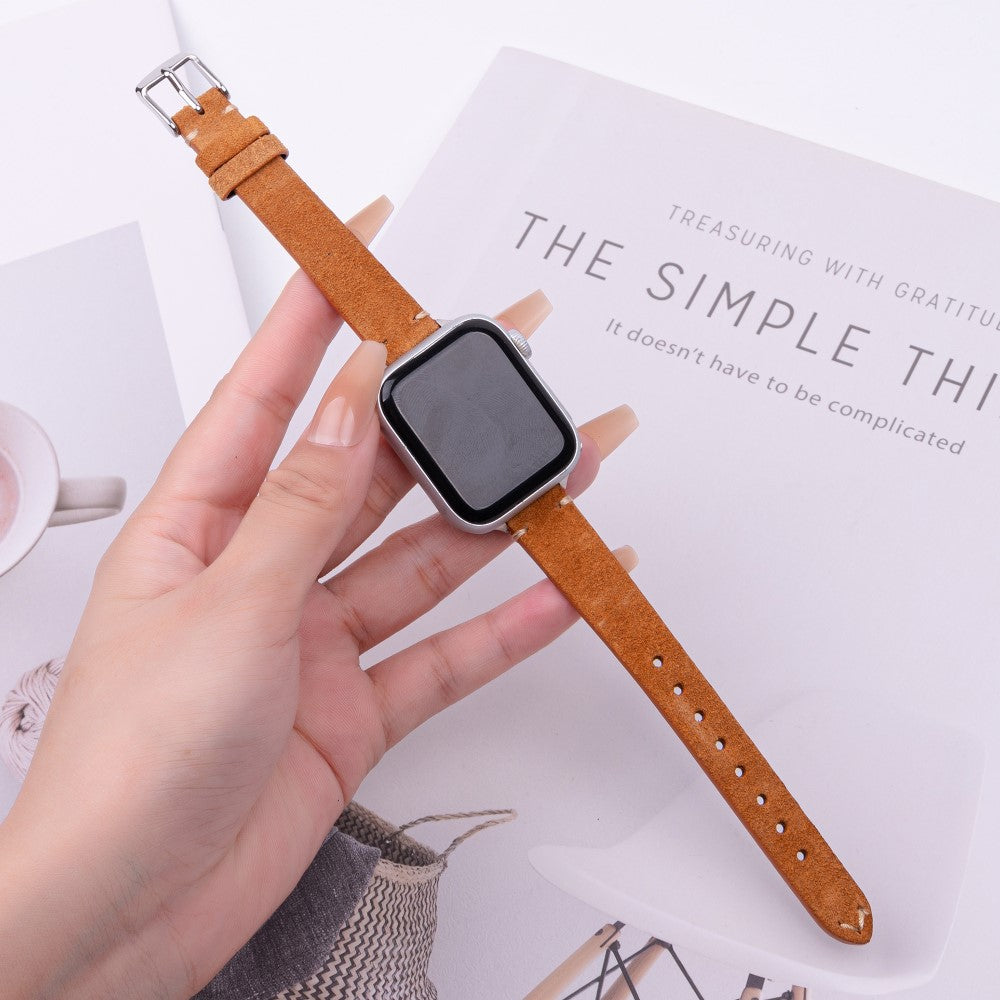 Cinturino Apple Watch Series 10 42 mm in vera pelle di mucca semplice e opaca - Marrone