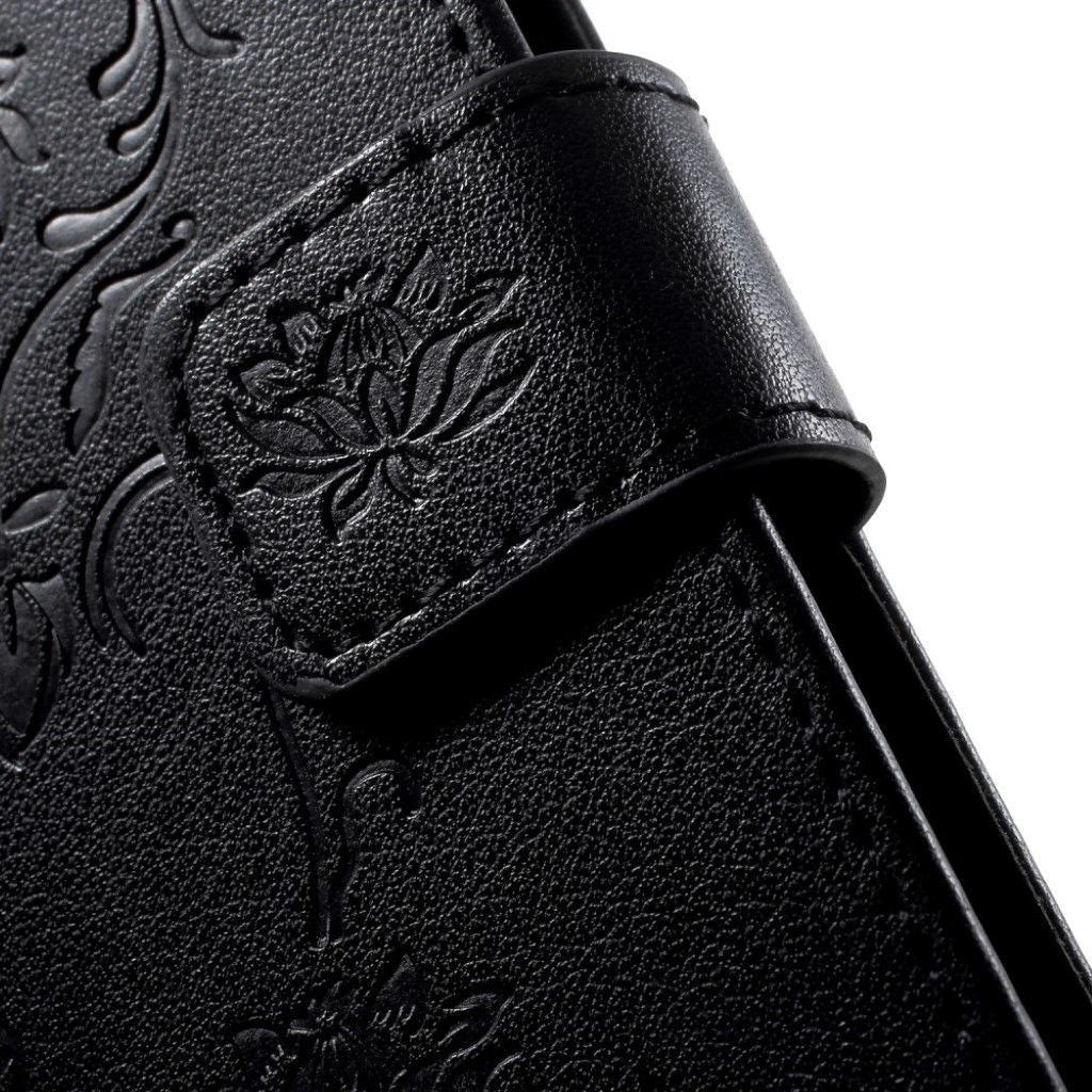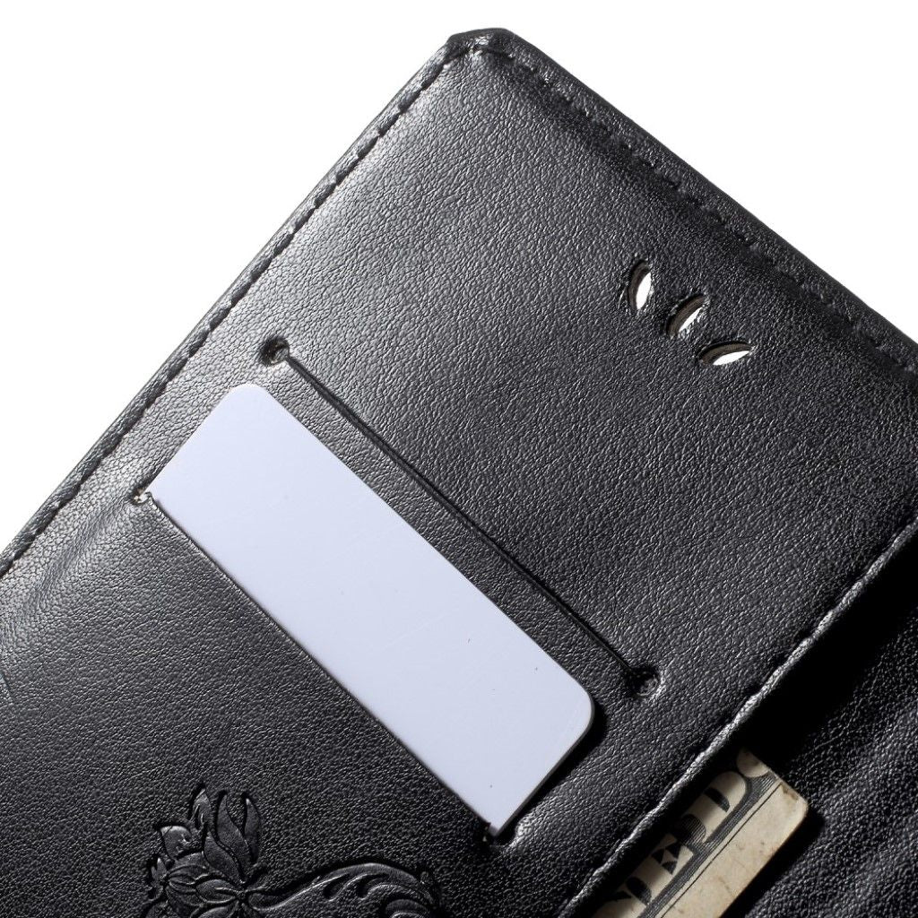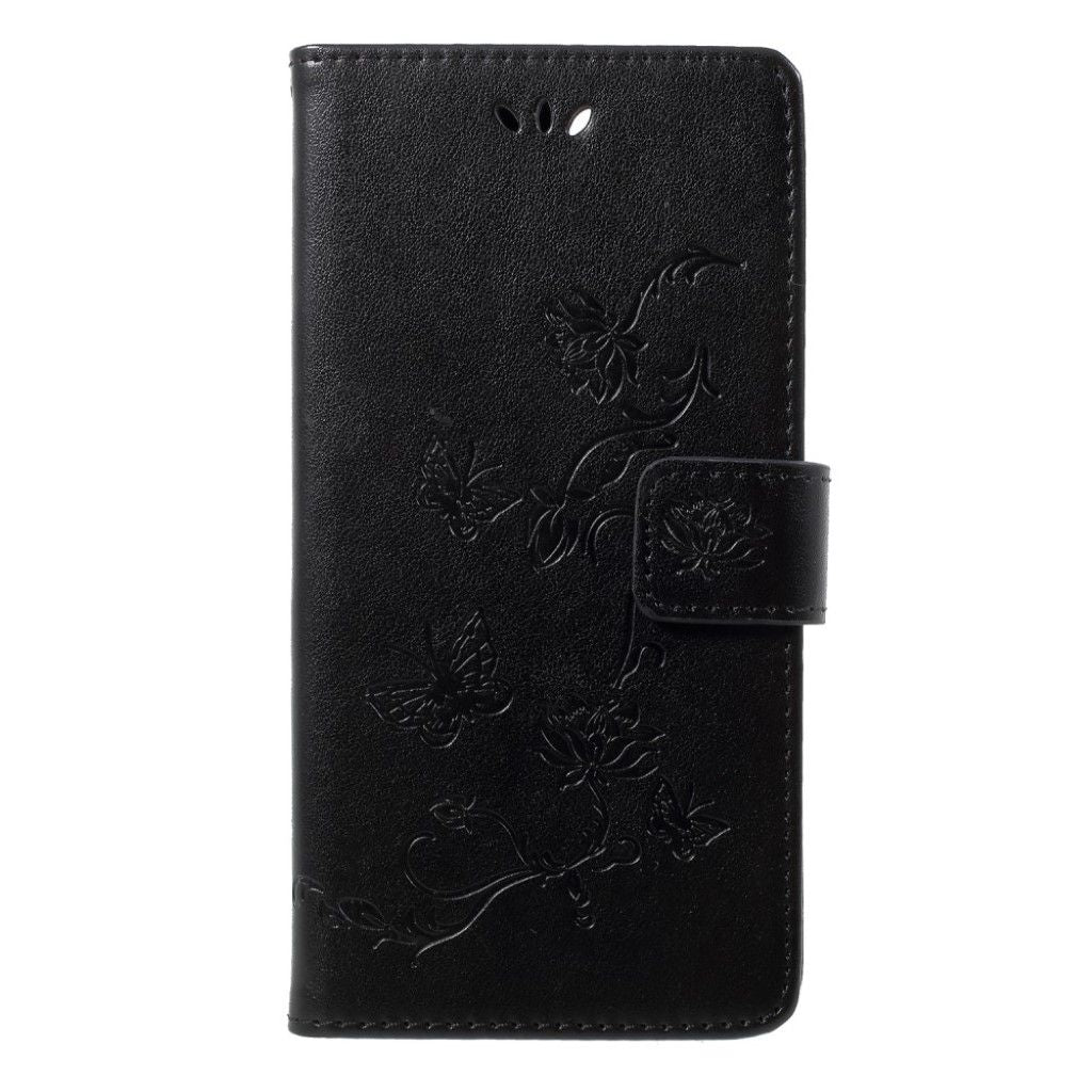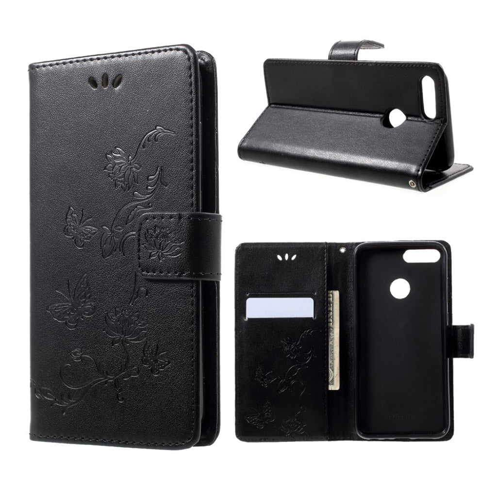 Custodia flip in pelle Huawei Honor 9 Lite con impronta di farfalla e fiore - Nero