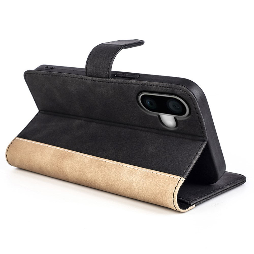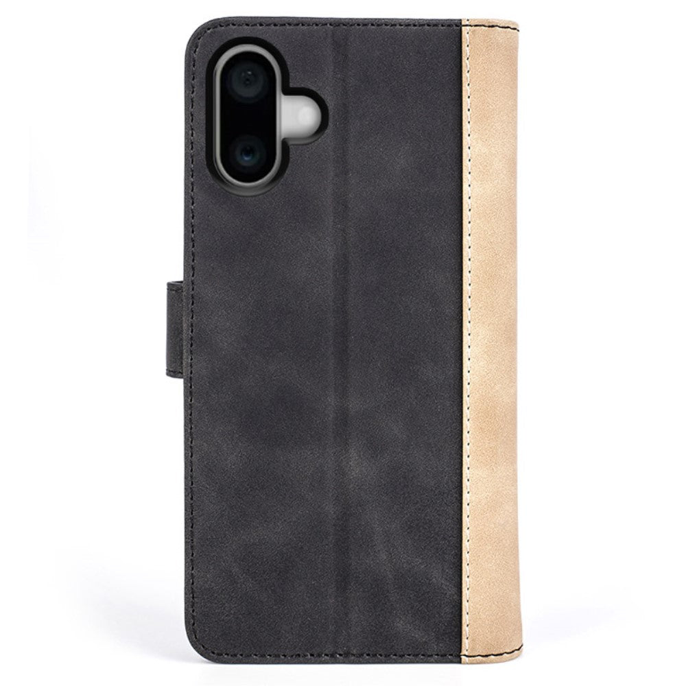 Custodia flip in pelle per iPhone 16 Plus bicolore - Nero