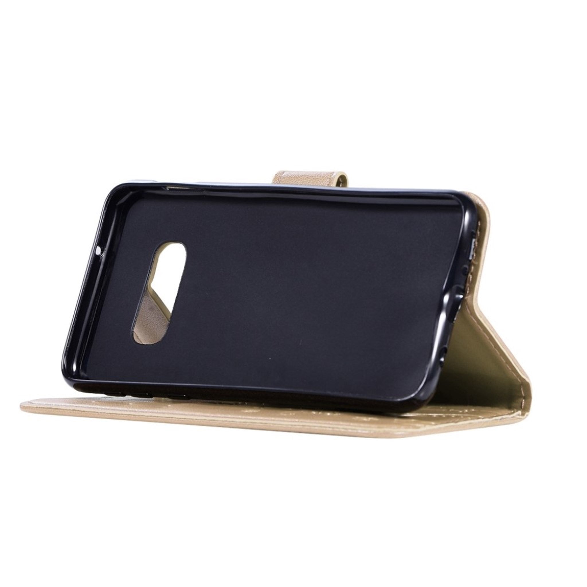 Custodia flip in pelle per Samsung Galaxy S10e con impronta di fiore di burro - Oro
