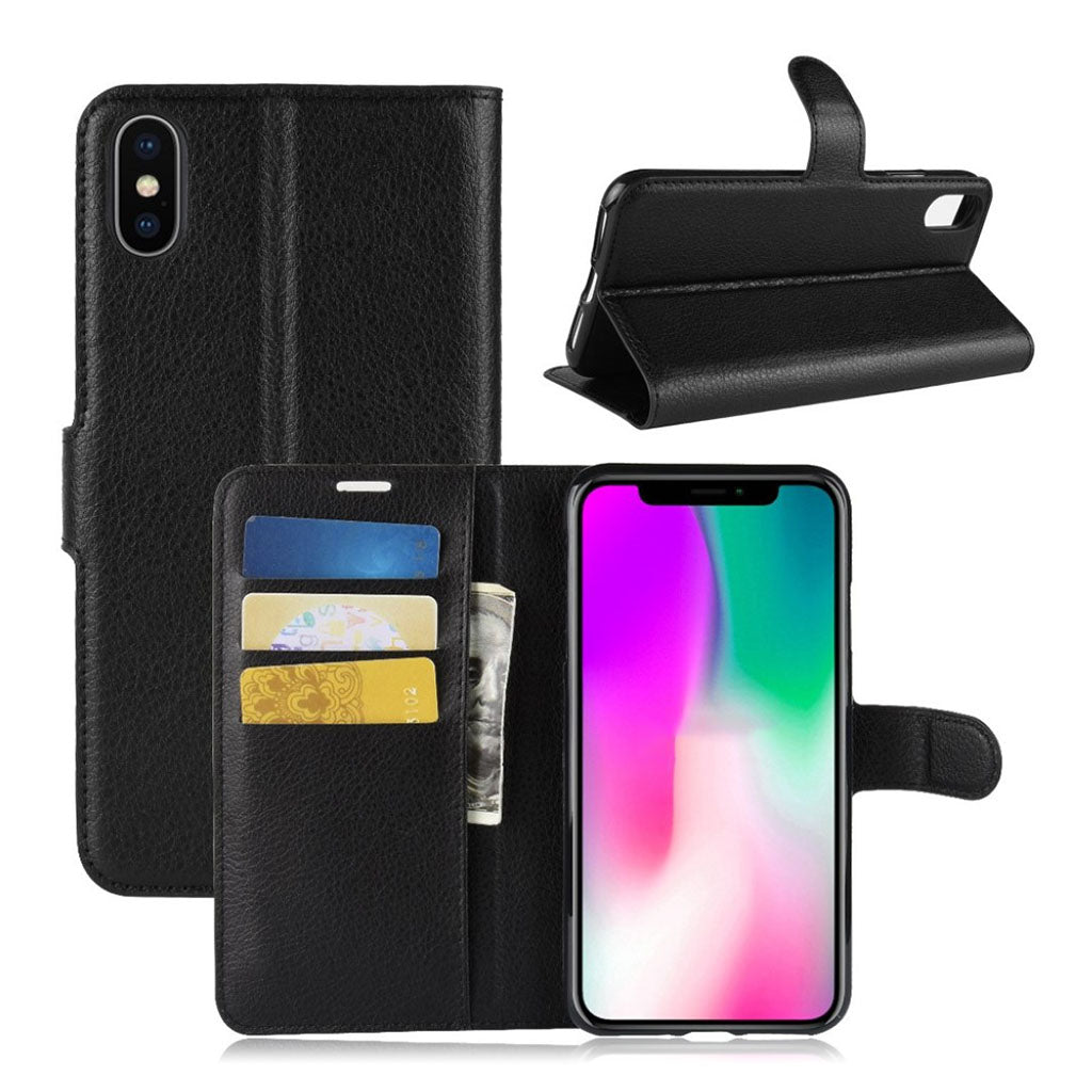Custodia flip per iPhone Xr in pelle con texture litchi - Nero
