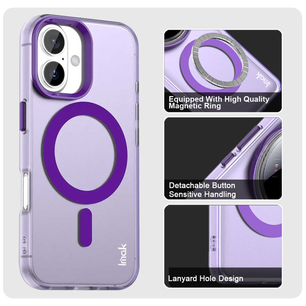 Custodia IMAK per iPhone 16 Plus compatibile con MagSafe Candy Color Anti Drop Flexible e PET Back Cover - Viola