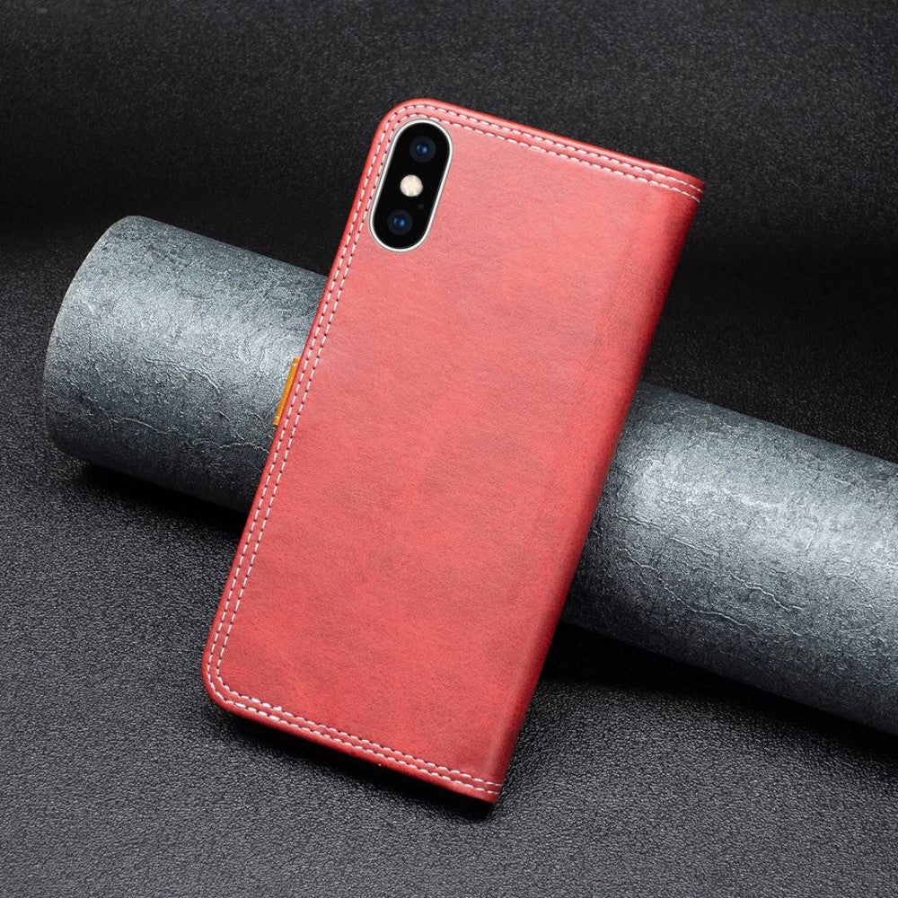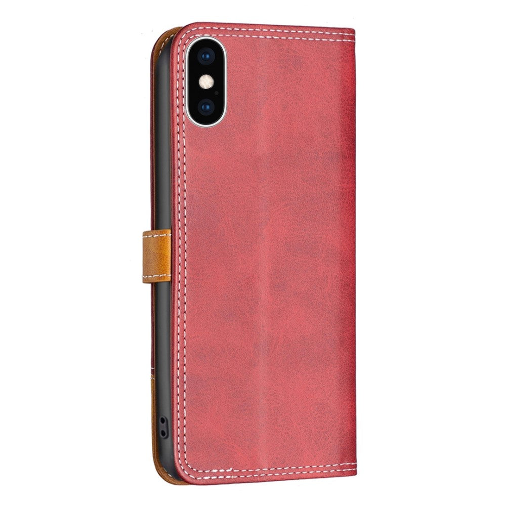 Custodia in pelle bicolore BINFEN per iPhone Xs Max - Rosso