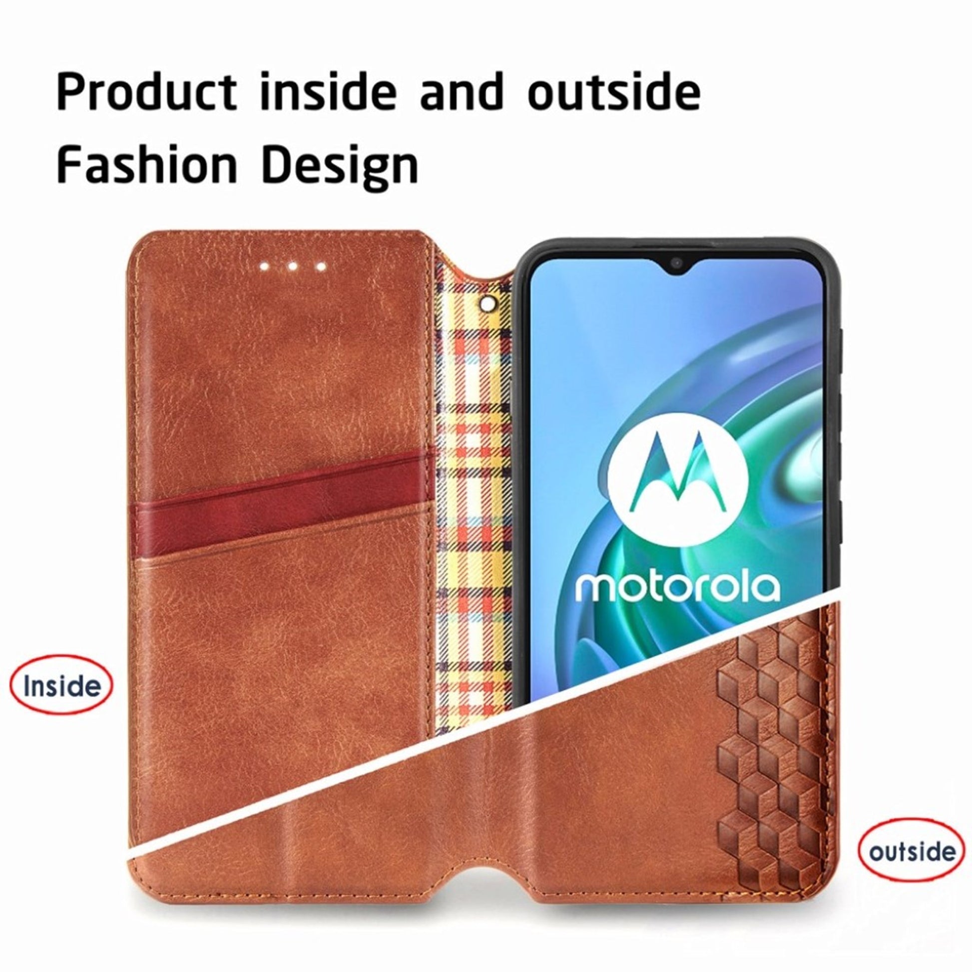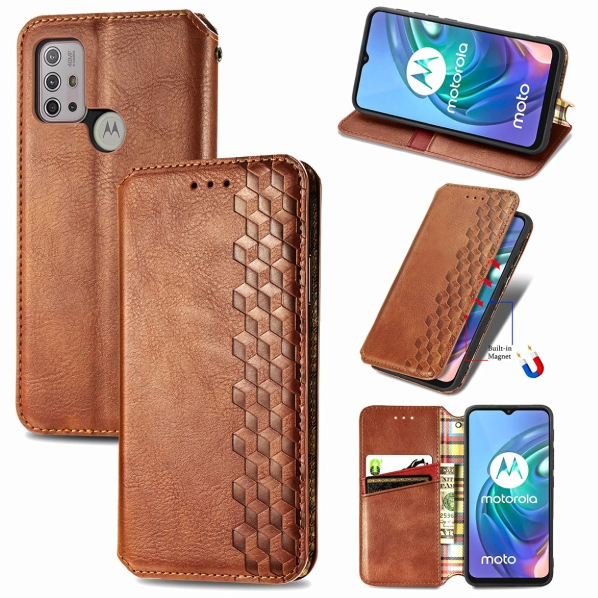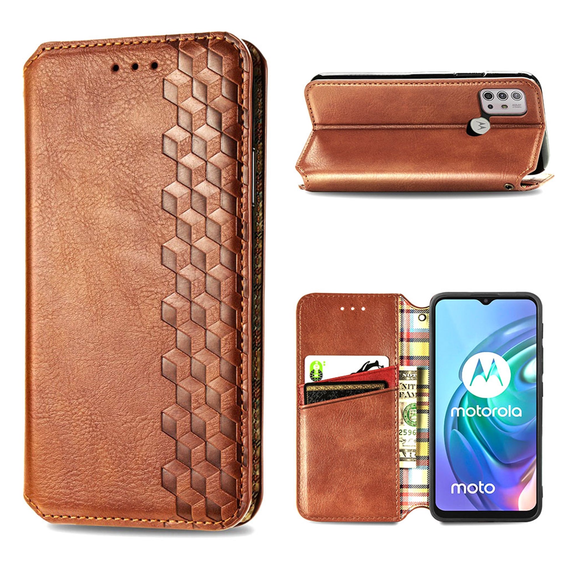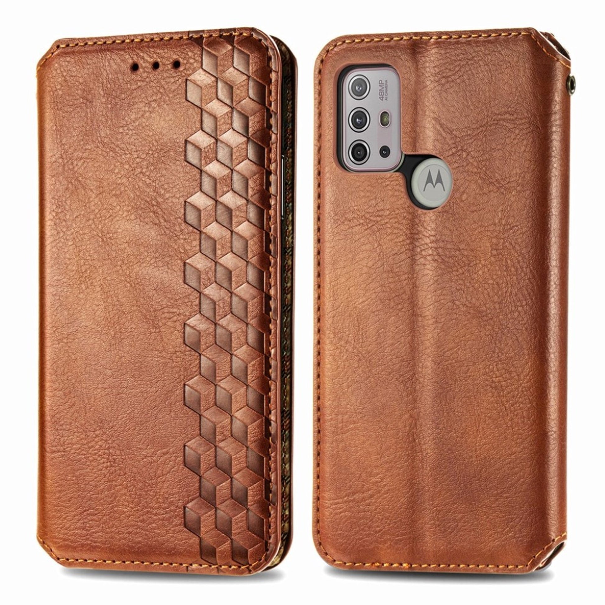 Custodia in pelle con elegante stampa a rombi per Motorola Moto G30 - Marrone