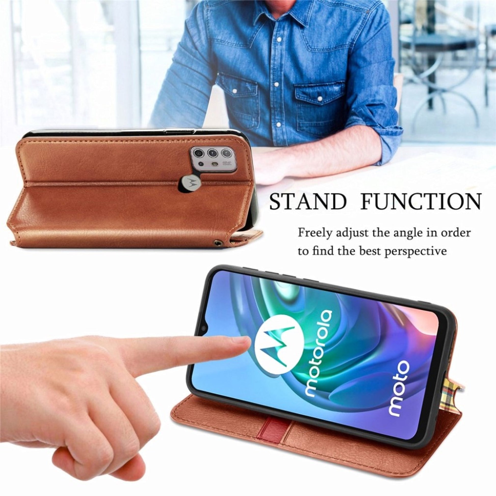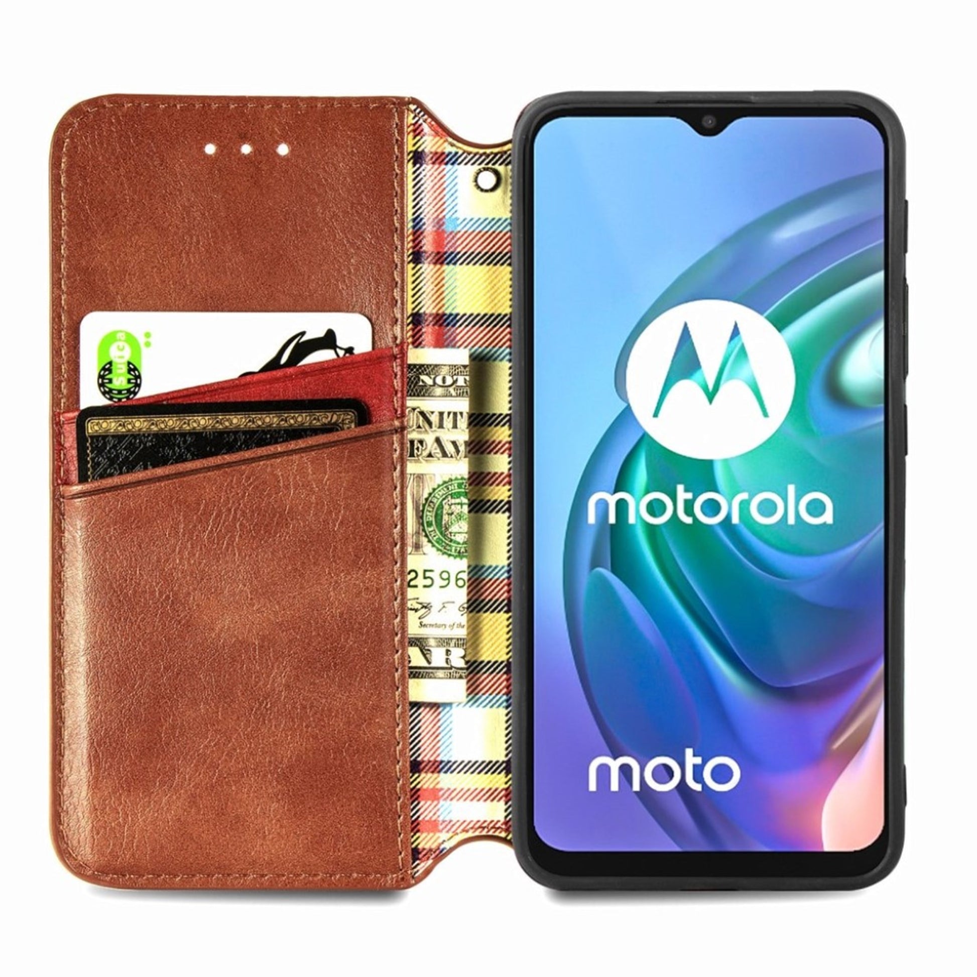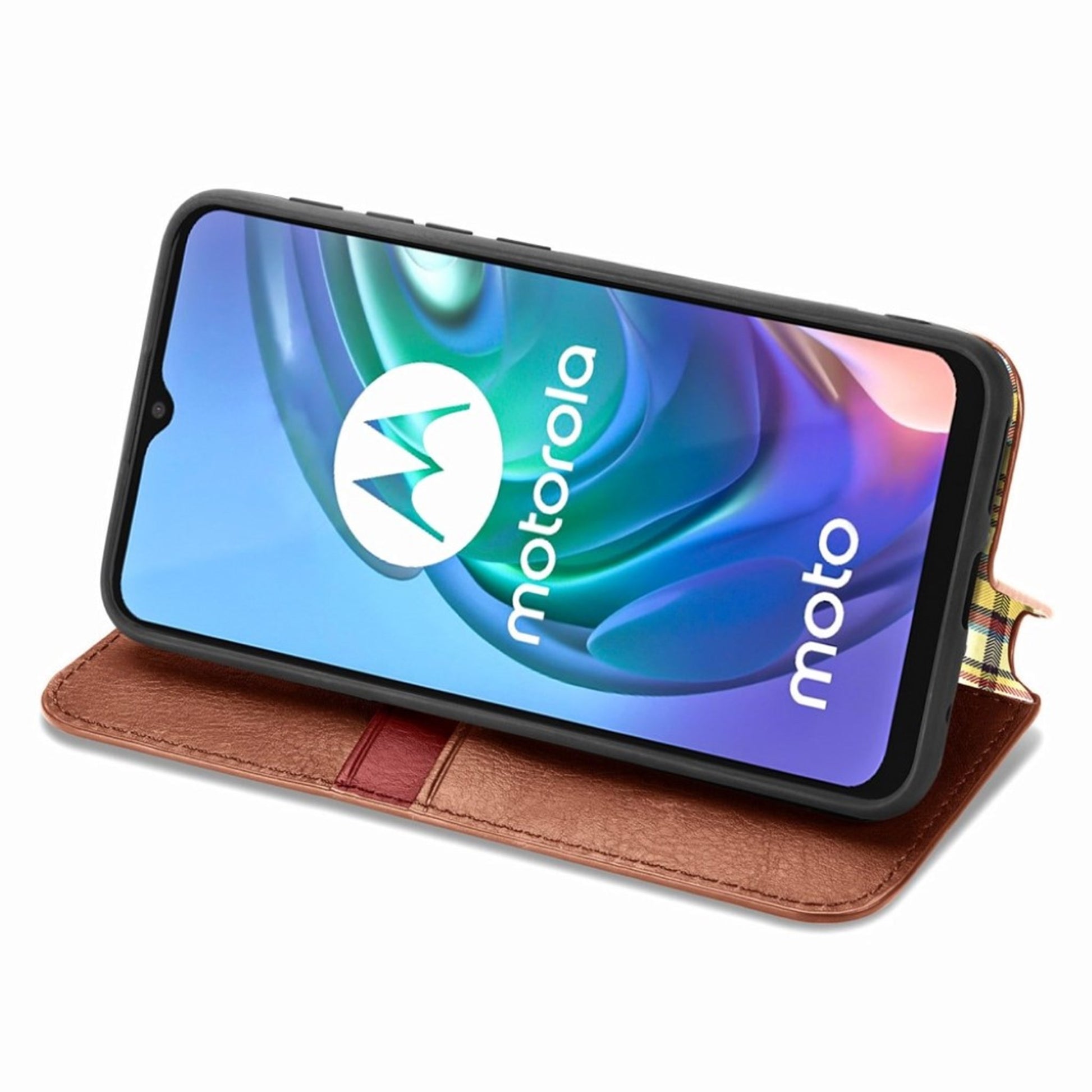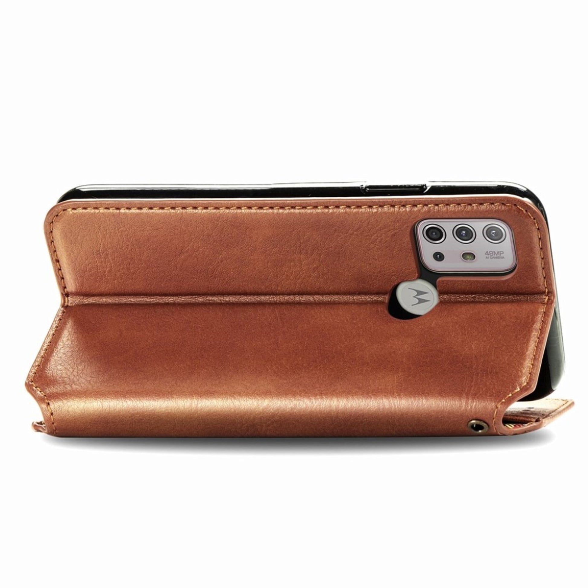 Custodia in pelle con elegante stampa a rombi per Motorola Moto G30 - Marrone