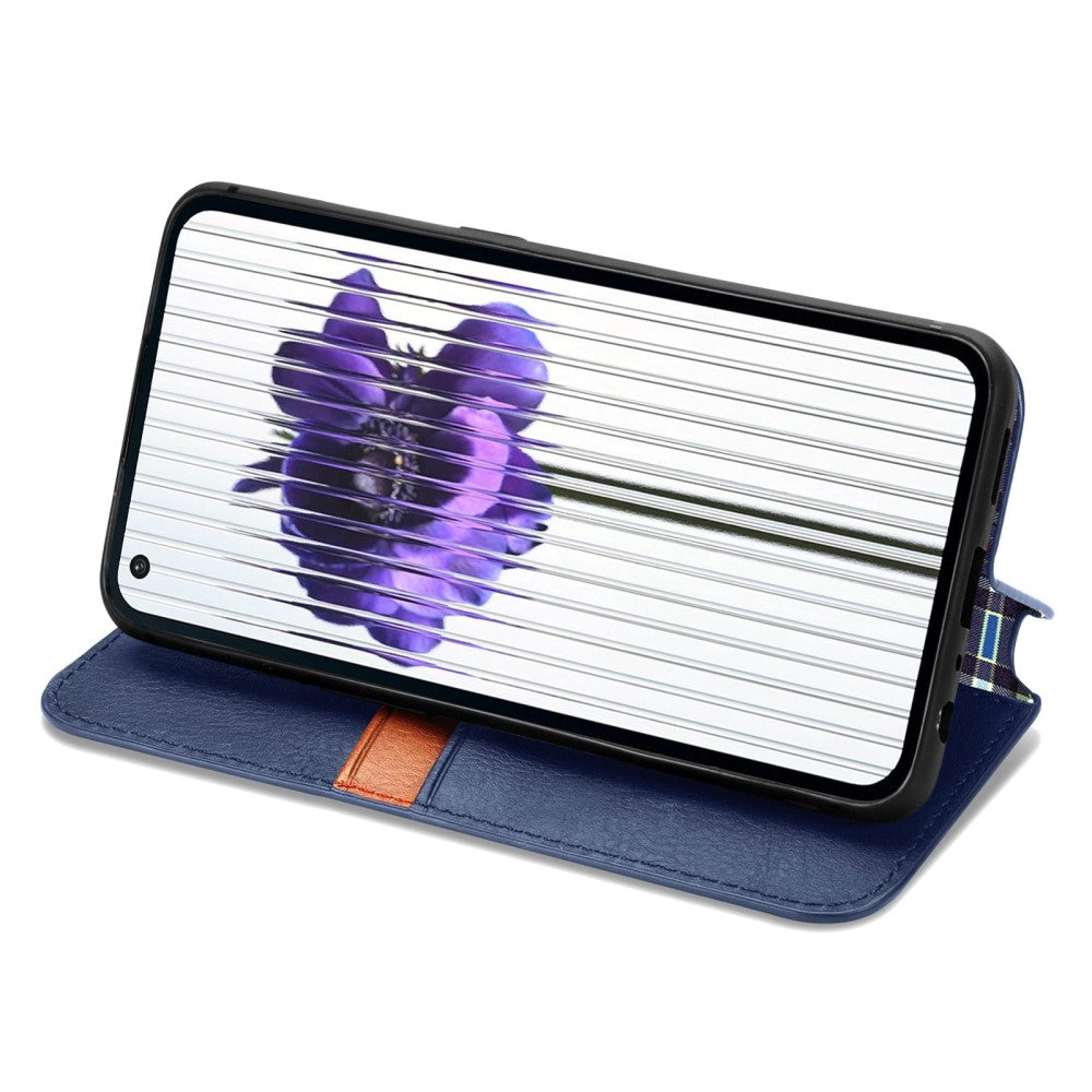 Custodia in pelle con un'elegante stampa a rombi per il telefono Nulla (1) - Blu