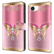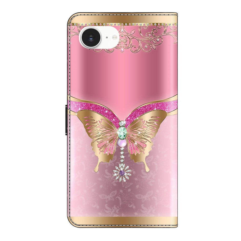 Custodia iPhone 16e Custodia 3D in pelle vegana con supporto - Rosa / Oro Butterfly