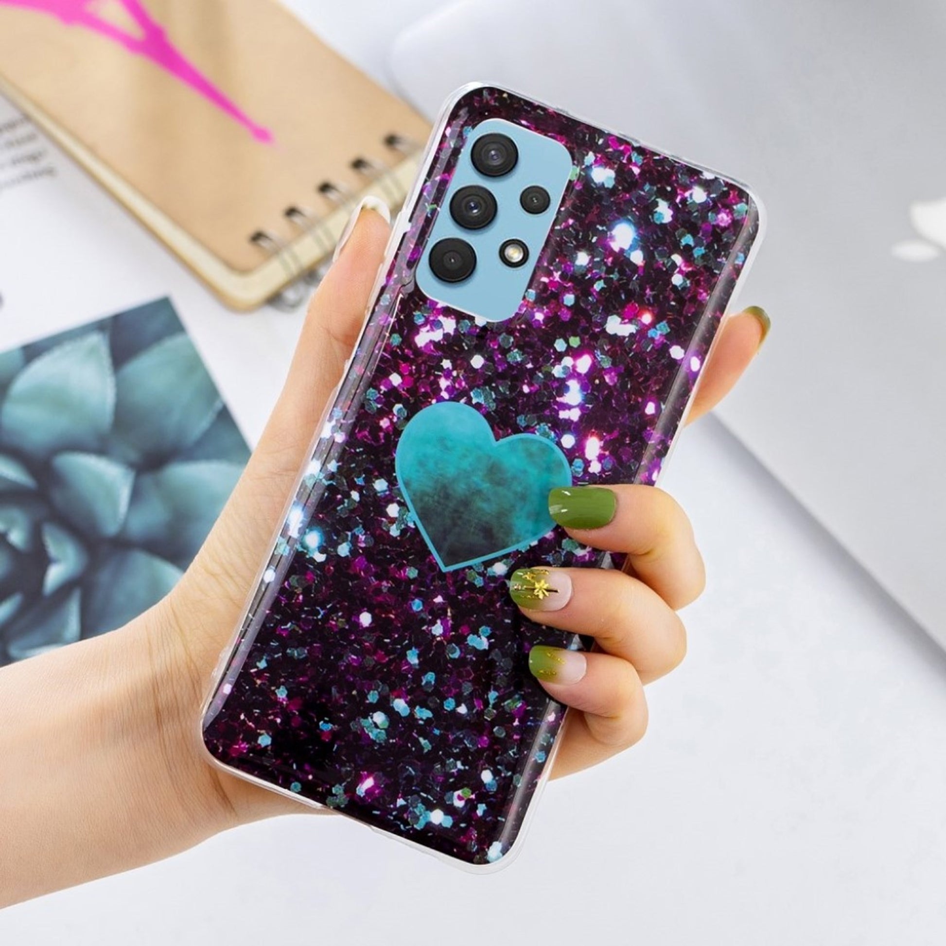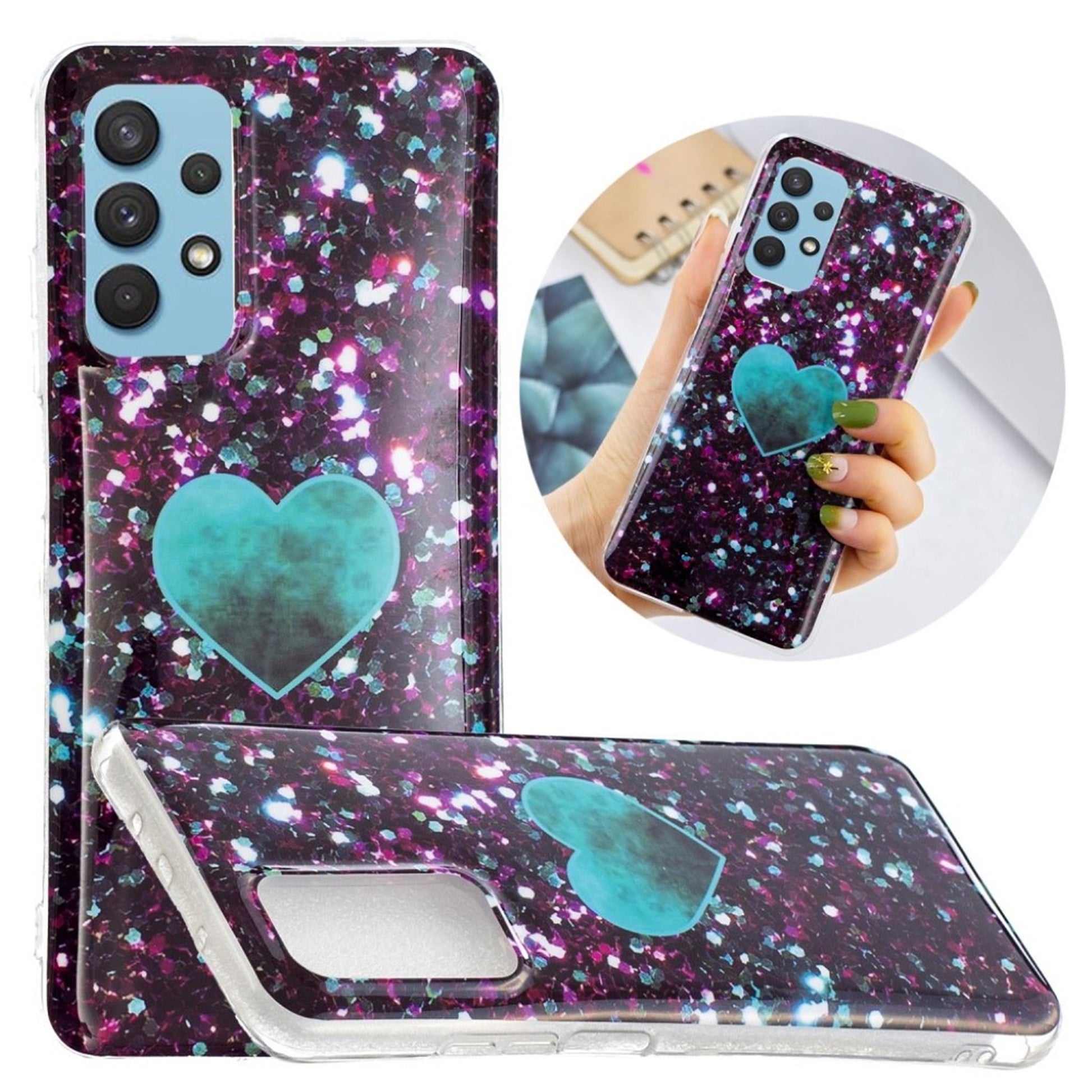 Custodia Marble per Samsung Galaxy A32 5G - Cuore Blu Scintillante