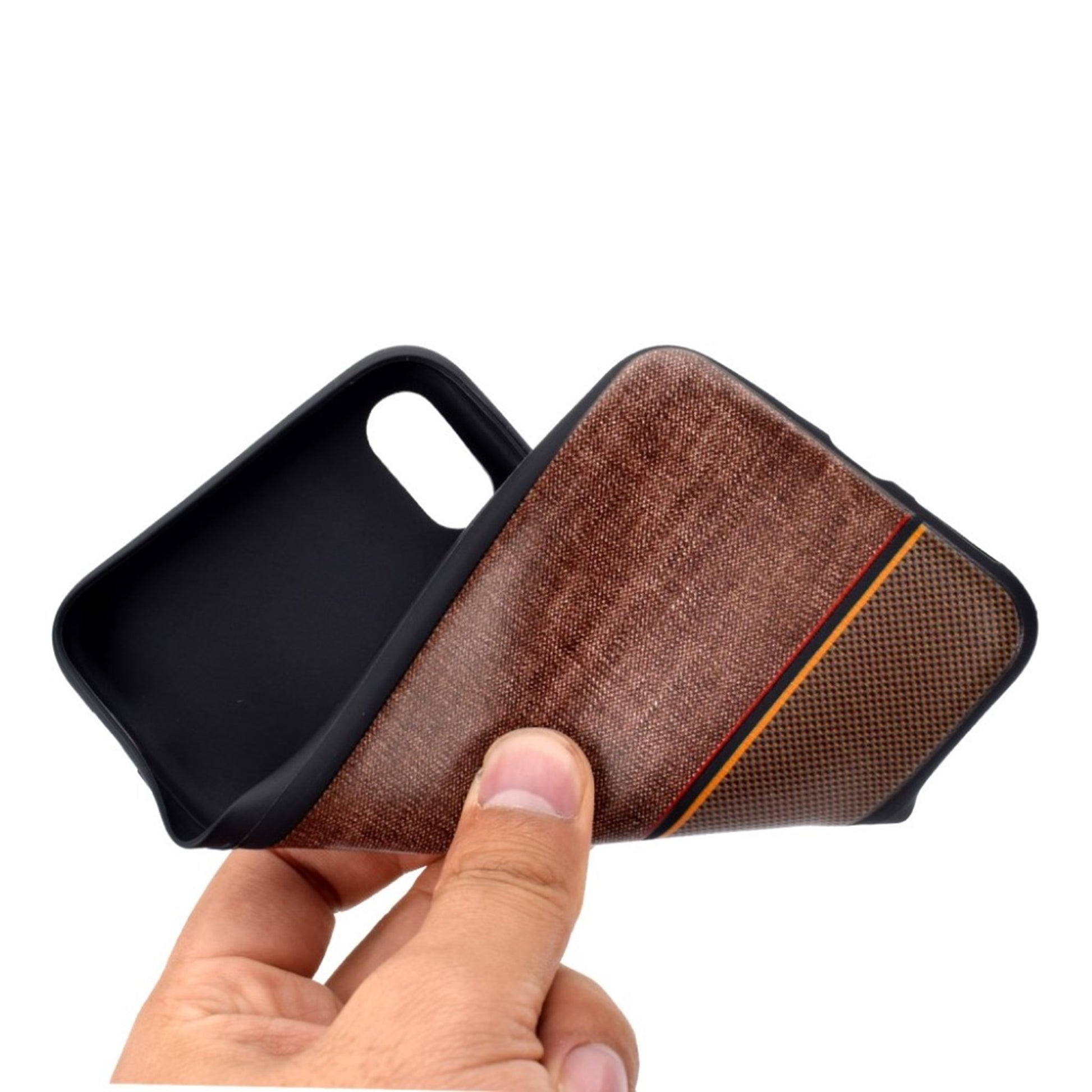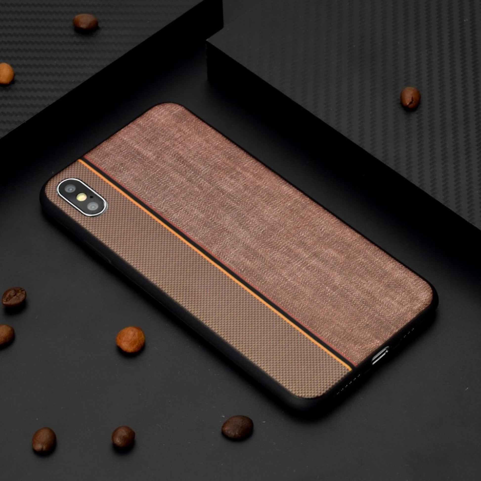 Custodia morbida in tessuto jeans per iPhone Xs Max - Caffè