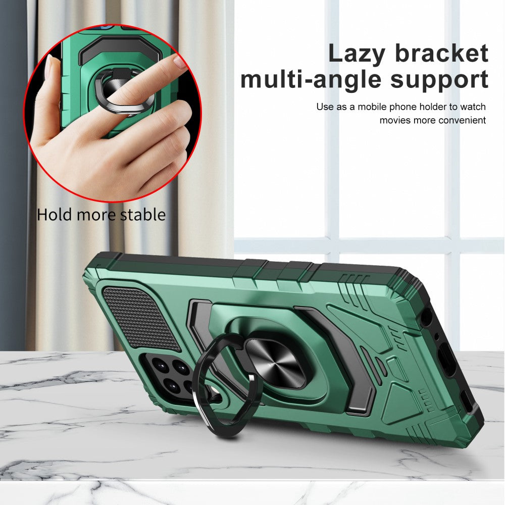 Resistente cover in plastica rigida con interno morbido e cavalletto per Samsung Galaxy A12 5G - Verde Notte