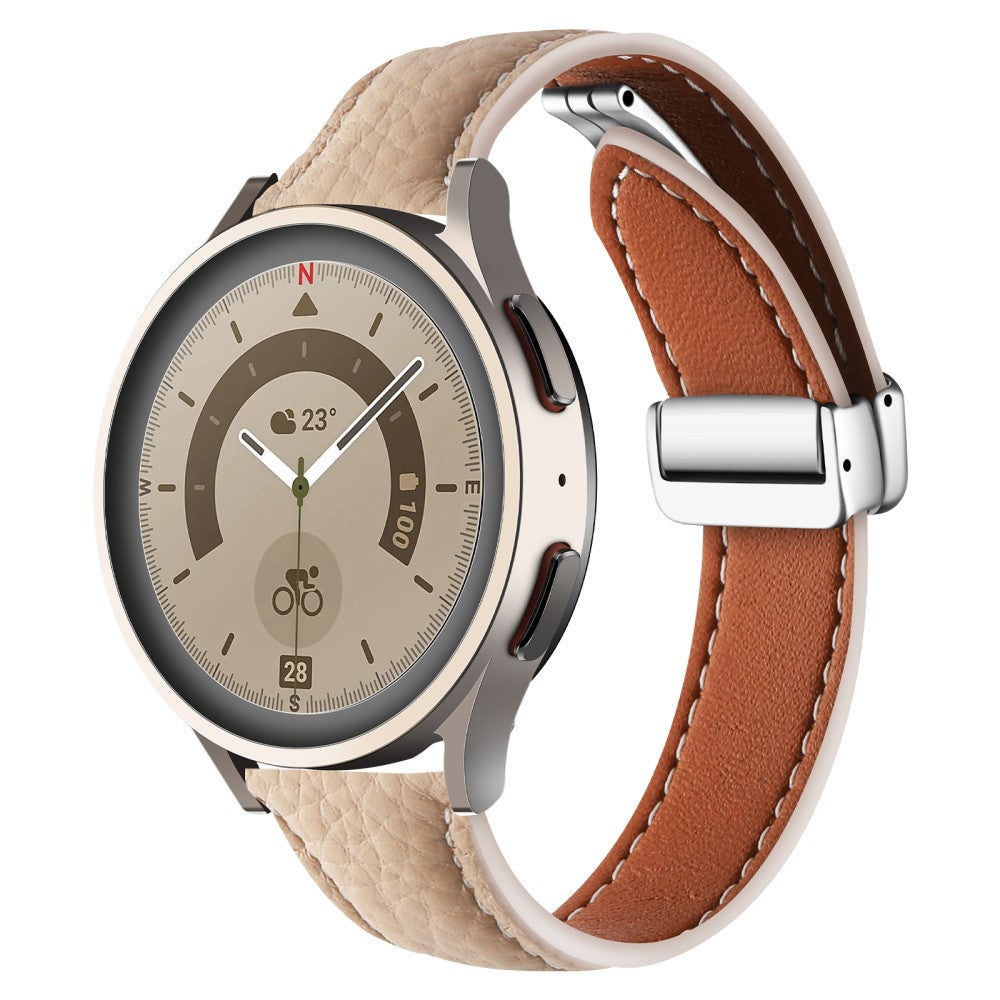 Samsung Galaxy Watch6 / Watch6 Classic Cinturino in pelle 20 mm con texture Litchi e fibbia pieghevole - Albicocca