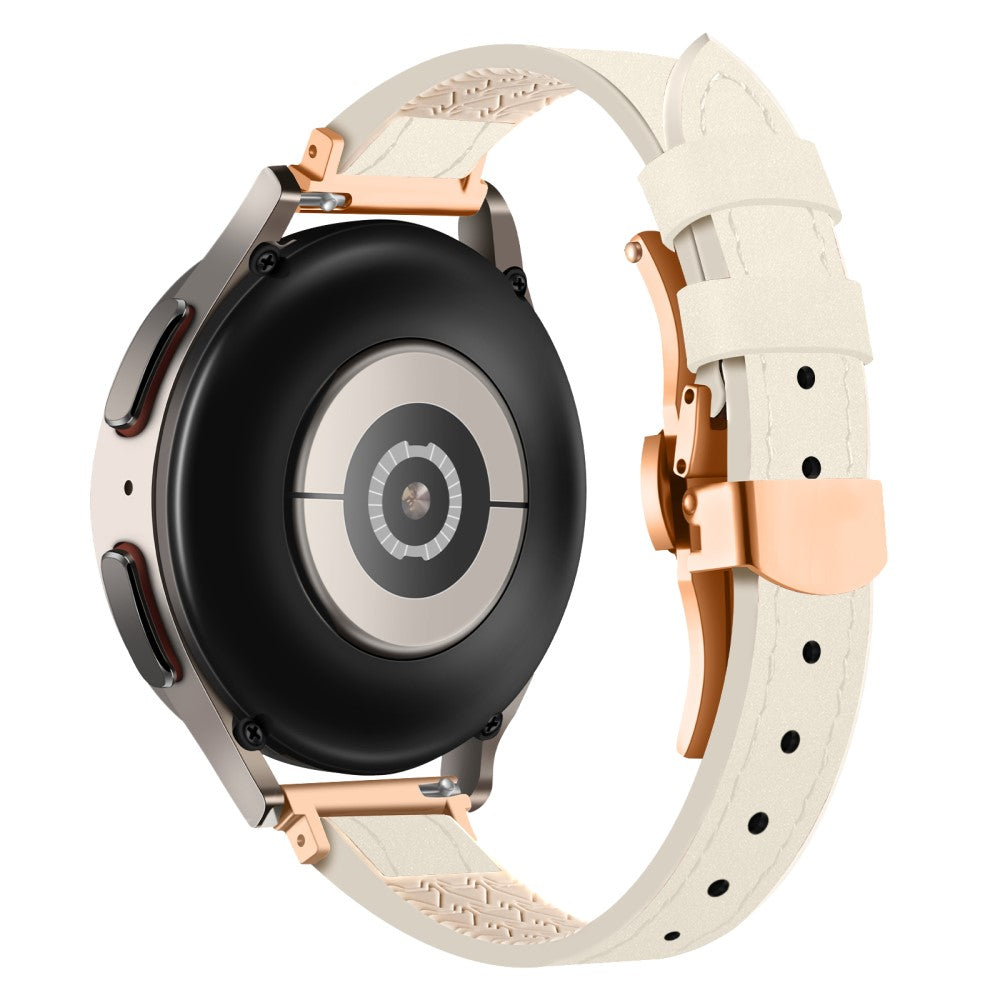Samsung Gear S3 Classic / Huawei Watch Ultimate / Xiaomi Watch S1 Cinturino in silicone e vera pelle da 22 mm - Beige / Fibbia Oro Rosa